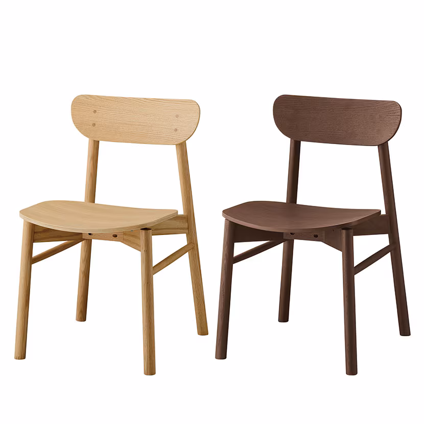 肘から背にかけての有機的なラインが特徴的な北欧テイストのチェアで、カフェやレストランに適した「スタンダード」として紹介されています。
