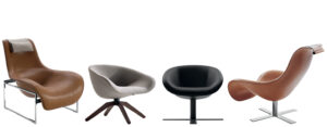 パトリシア・ウルキオラによるチェア/ソファシリーズで、シェル状フレームにキルティングクッションを合わせたような、柔らかさの強いビジュアルが特徴です。