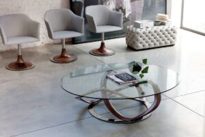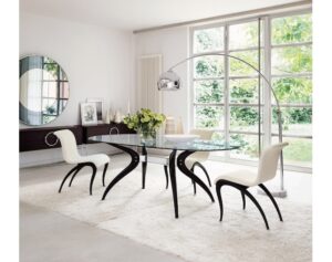 放射状に広がる脚や、ねじれ・曲げを加えた脚など、脚部が「彫刻作品」のようになっているデザインが多いです。