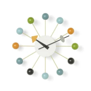 1947年にジョージ・ネルソンがデザインした「ボールクロック」は、カラフルなボールが特徴的な壁掛け時計です。新品価格8万円から12万円のところ、中古市場では4万円から8万円程度で取引されています。