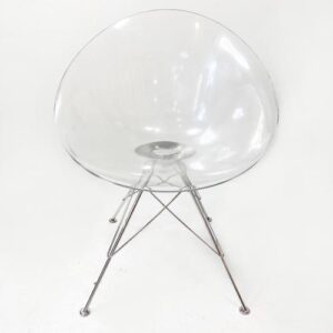 透明でほとんど存在感がないように見えながら、しっかりとした強度を持つこのチェアは、その後の透明家具の流行を決定づけた存在とされています。 -